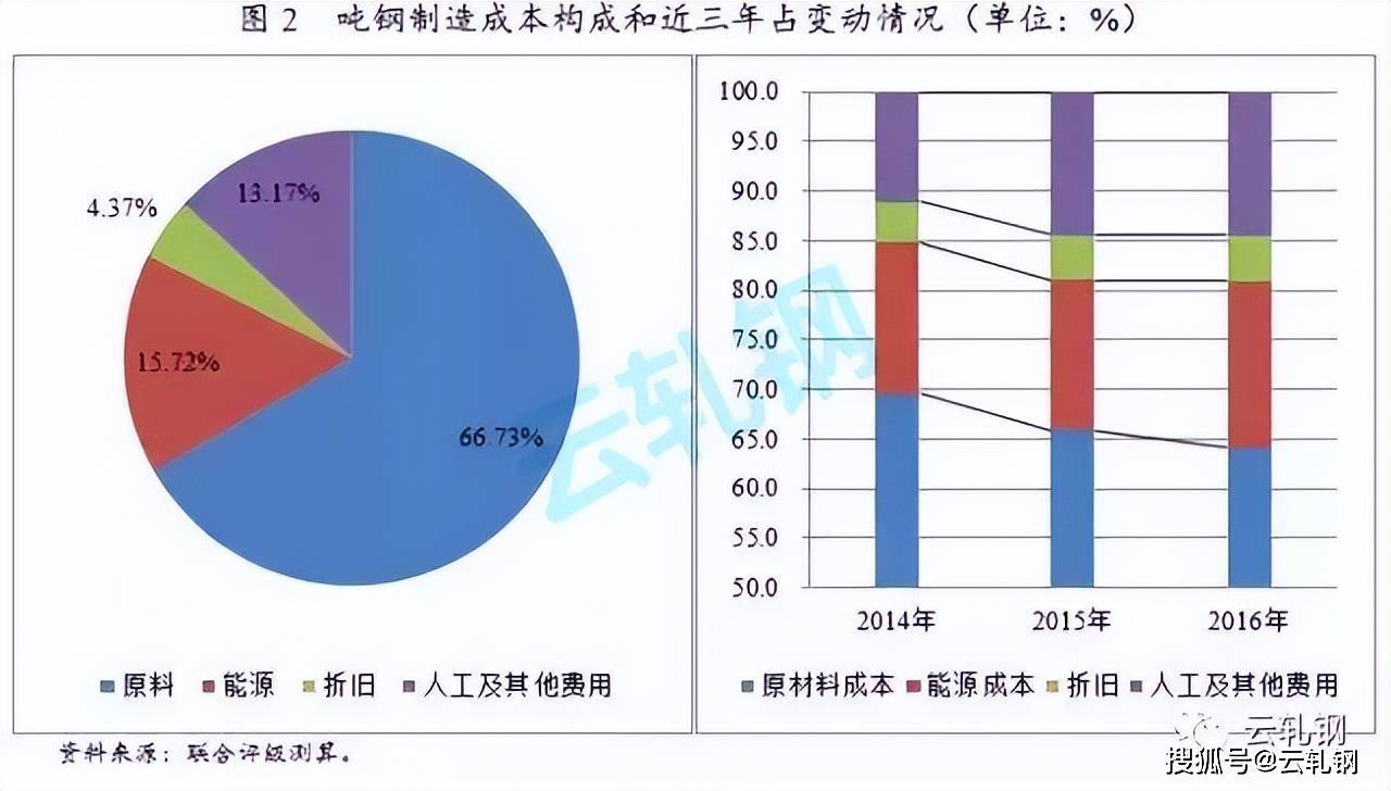 綜合來看,原材料成本、燃料成本、折舊成本和人工及其他成本占噸鋼制造成本的比重大致為67%、16%、金年會官方網站入口4%和13%。2014~2016年,鐵礦石、煤炭、焦炭等上游與原燃料價格波動較大,受供給側改革影響,走勢出現分化;主要表現為,原材料成本占噸鋼制造成本比重下滑,燃料成本和人工及其他成本占噸鋼制造成本比重上升。