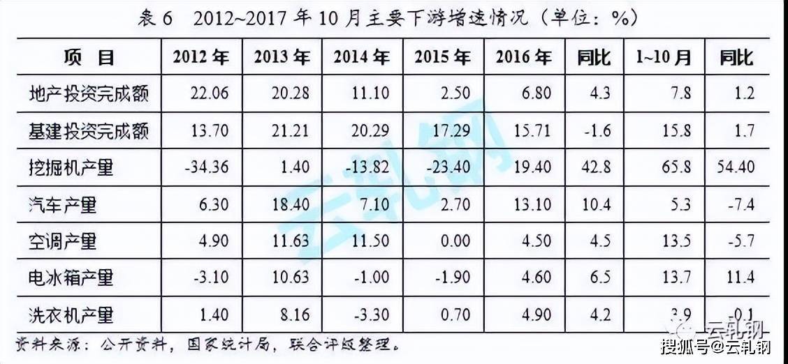 2017年1~10月,基礎設施建設,國內固定資產投資完成額增速有所放緩,但規(guī)模仍然很大。從上市公司數據來看,2017年1~10月,從事基礎設施建設的企業(yè)新承接訂單較上年同期顯著增長,且增幅較上年同期顯著提升。加之,地方政府對基建投資有較高熱情,基建投資規(guī)模和用鋼需求將對鋼材銷售提供良好支撐。房地產層面,受“930”政策調控影響,房地產產業(yè)一定程度上體現出地產行業(yè)囤地意愿較強而開工意愿相對遜色的行業(yè)發(fā)展窘境。不過,購地量的提升為長期內建筑用鋼需求提供了較好的支撐。汽車行業(yè)由于前期消費透支等因素影響,2017年,國內汽車市場需求不足。目前,國內汽車庫存數量較高,“金九銀十”和年底傳統旺季或將對庫存消化產生一定積極影響;但預期2017年12月國內汽車產量仍將保持較低增速或短期下降,一定程度上對板材產品的銷售形成一定沖擊。此外,白色家電行業(yè)受2016年地產市場旺盛影響需求顯著上行。中國仍為全球鋼材第一出口國,但出口消耗國內過剩鋼材產量的邏輯得到明顯修復。出口區(qū)域多為東南亞新興經濟體,發(fā)展迅速,用鋼需求較大結構以低端為主;因此,東南亞經濟體的穩(wěn)定發(fā)展仍將成為國內鋼材消化的重要支撐。