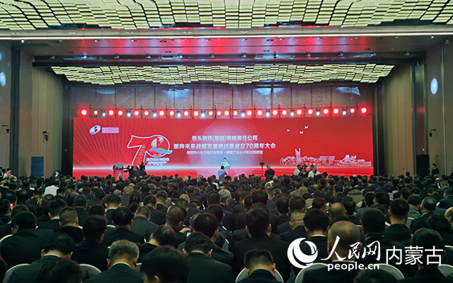 包頭鋼鐵(集團(tuán))有限責(zé)任公司面向未來戰(zhàn)略發(fā)展研討暨成立70周年大會(huì)現(xiàn)場(chǎng)。人民網(wǎng)記者 劉藝琳攝
