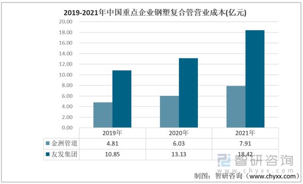 兩家企業(yè)的鋼塑復(fù)合管的營(yíng)業(yè)成本變化呈現(xiàn)上漲的趨勢(shì),主要跟鋼塑復(fù)合管原材料價(jià)格上漲有關(guān);2021年金洲管道、友發(fā)集團(tuán)的鋼塑復(fù)合管營(yíng)業(yè)成本分別為7.91億元、18.42億元。