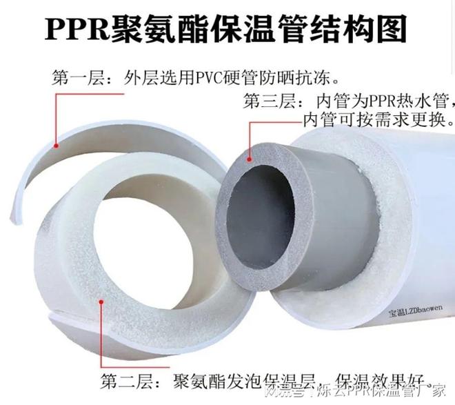 湖北某個五星酒店就因為管道腐蝕破裂導(dǎo)致被迫停業(yè)維修,損失高達百萬元。而爍云PPR聚氨酯保溫管的三層復(fù)合結(jié)構(gòu)就完美解決了這個問題,內(nèi)層采用食品級PPR管保障水質(zhì)安全,中間是硬質(zhì)聚氨酯泡沫形成保溫層,外層采用高強度PVC護套管抵御腐蝕。根據(jù)實際測量數(shù)據(jù)PPR保溫管的導(dǎo)熱系數(shù)低至0.013-0.03 kcal,和傳統(tǒng)管道對比減少了6倍熱損耗,每一百米管道水溫僅降0.1℃。
