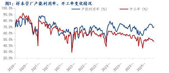2024年上半年全國無縫鋼管產(chǎn)量弱于往年同期水平,金年會金字招牌至上網(wǎng)站金年會進入2024年以來,無縫管市場需求相對低迷,3月份旺季行情下行,市場需求釋放緩慢,無縫管廠庫存積壓,管廠庫存壓力凸顯,原料基本按需采購,鋼廠原料庫存維持相對低位,利潤收縮,整體管廠生產(chǎn)積極性不高,根據(jù)mysteel調(diào)研,全國無縫管廠周生產(chǎn)情況調(diào)查統(tǒng)計(32家生產(chǎn)企業(yè),122條產(chǎn)線月份平均產(chǎn)能利用率約為66.51%,同比下降2.1%,開工率下降約8%,開工率降幅明顯高于產(chǎn)能利用率。