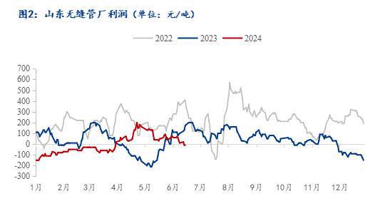 進入2024年全年來看,整體鋼材產(chǎn)業(yè)鏈利潤明顯下滑,行業(yè)競爭持續(xù)加劇,根據(jù)鋼聯(lián)調(diào)研,2023年樣本調(diào)坯軋材無縫管廠平均利潤為49元/噸,較2022年的207元/噸大幅下降158元/噸;2024年上半年平均利潤為-18元/噸,同比2023年全年平均利潤降67元/噸,多數(shù)企業(yè)進入負利潤階段。下半年行業(yè)大概率繼續(xù)處于低毛利時代,企業(yè)心態(tài)維持謹(jǐn)慎,管廠開工積極性維持一般,無縫鋼管產(chǎn)量趨勢基本維持前低后高態(tài)勢。整體下半年產(chǎn)量繼續(xù)維持中低位水平。